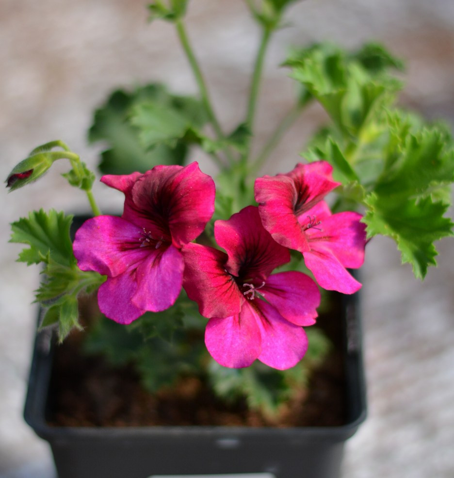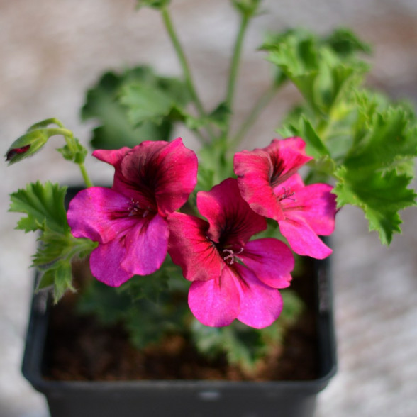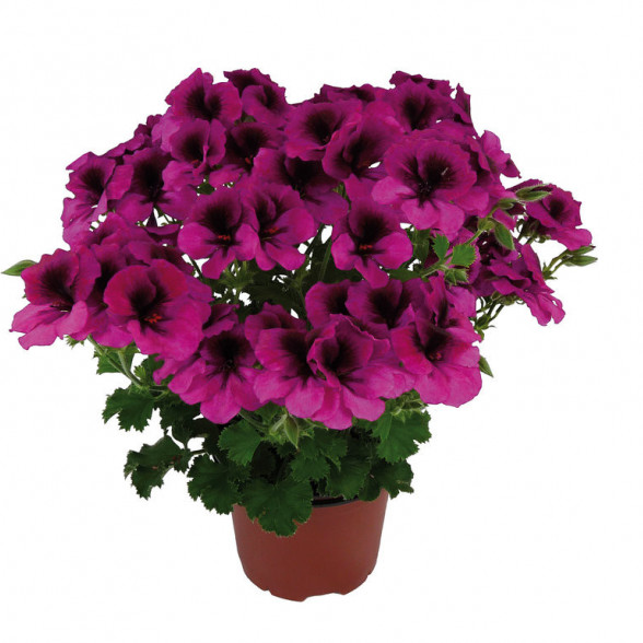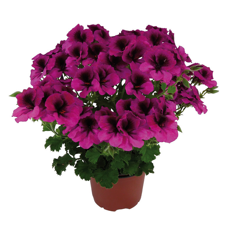 Medium-sized pelargonium. The flowers are bicoloured. Compact and bushy growth habit. Delivery 1-7 may.