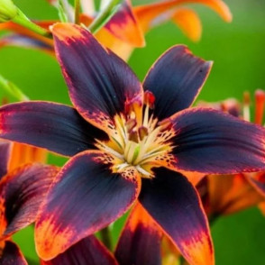Азиатская лилия. Высота 100 см. Размер луковицы 18/20. Количество цветков: 2+. Окраска: оранжевая. Цветки без выраженного аромата.
