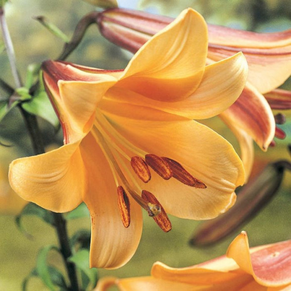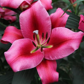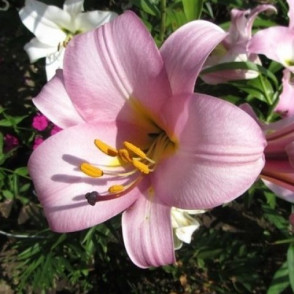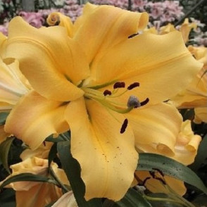 Гибрид восточной трубчатой лилии. Размер луковицы 20/22. Высота 120 см. Количество цветков от 5. Цветки крупные – около 20 см в диаметре. Цвет персиково-розовый с желтоватым центром. Ароматная .
