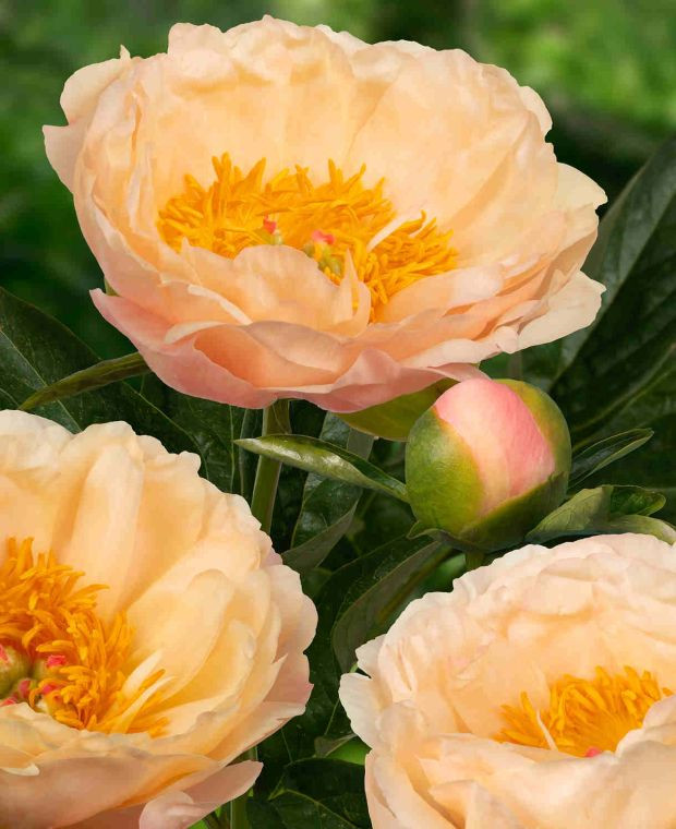 Пион «Кингсдей» раскрывается полумахровыми бутонами со слабым ароматом. Высота 90 см. Диаметр цветка достигает почти 20 см. Цветок украшен круглыми лососево-оранжевыми лепестками и большим количеством оранжевых тычинок. «Кингсдей» — обильноцветущее растение с множеством идеально округлых полумахровых цветков.