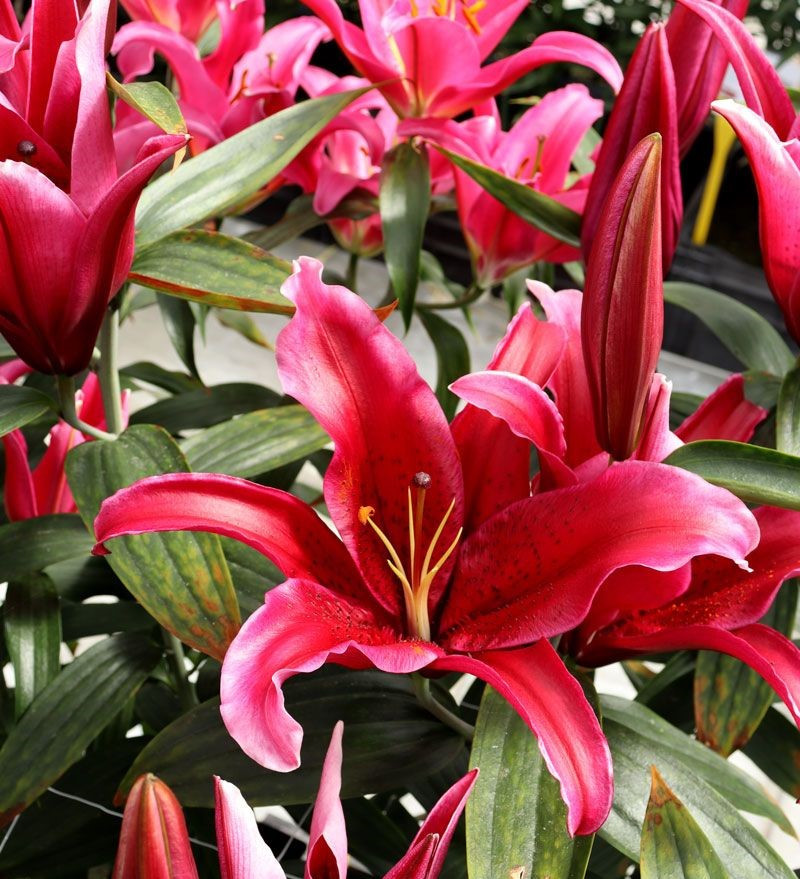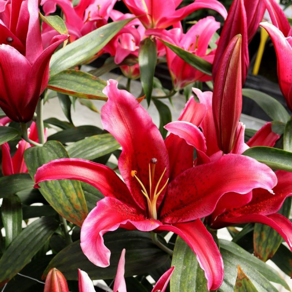 Восточная лилия. Размер луковицы 18/20. Количество цветков 8+. Цветки крупные, насыщенно-красные с более тёмными точками. Высота 120 см. Время цветения – июль.